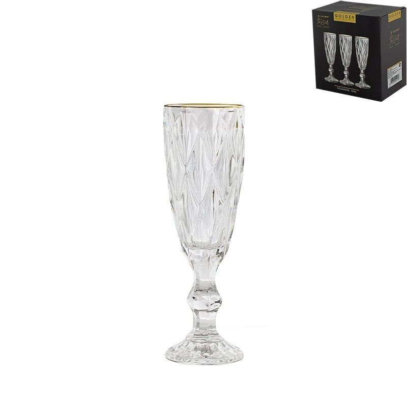 Набор из 6 фужеров для шампанского из прозрачного стекла с золотой окантовкой.