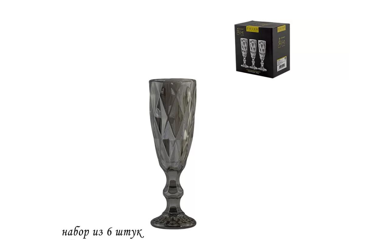 Набор из 6 фужеров для шампанского из серого стекла.