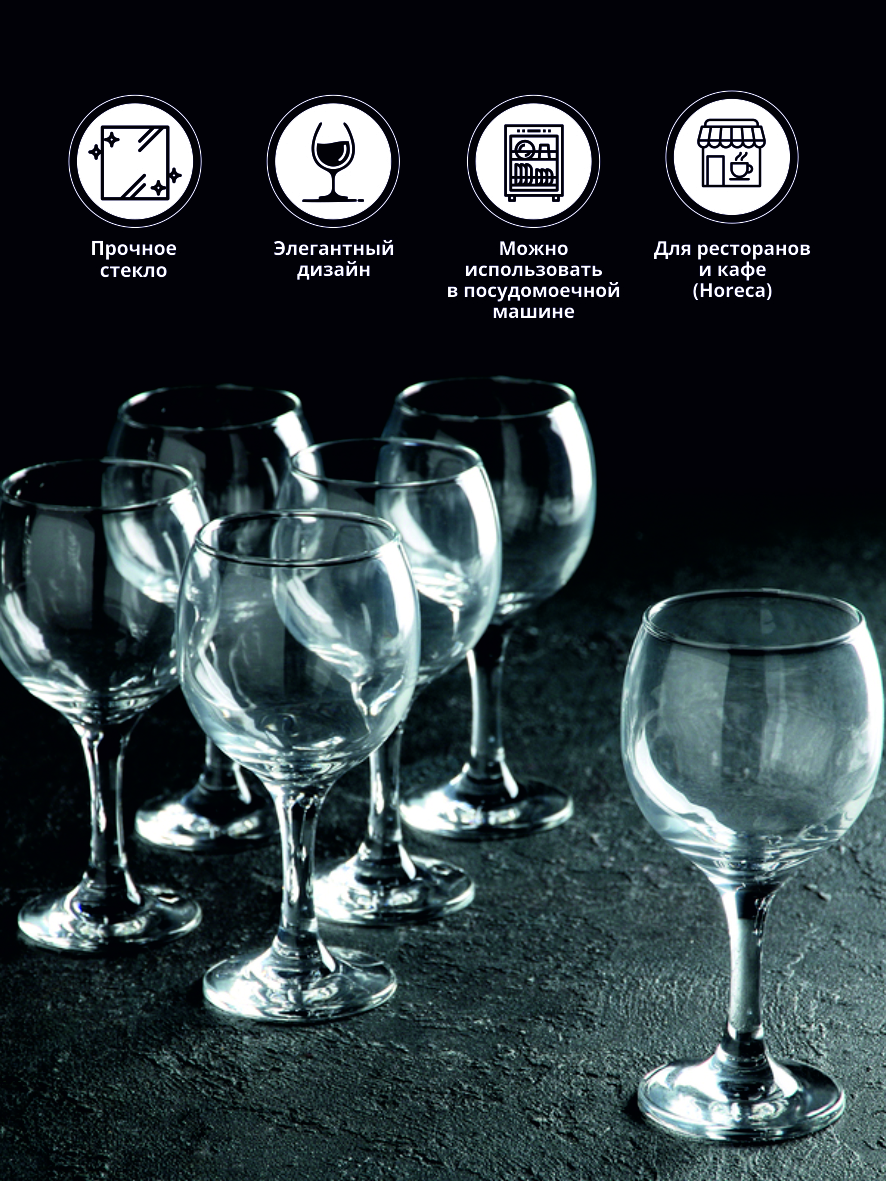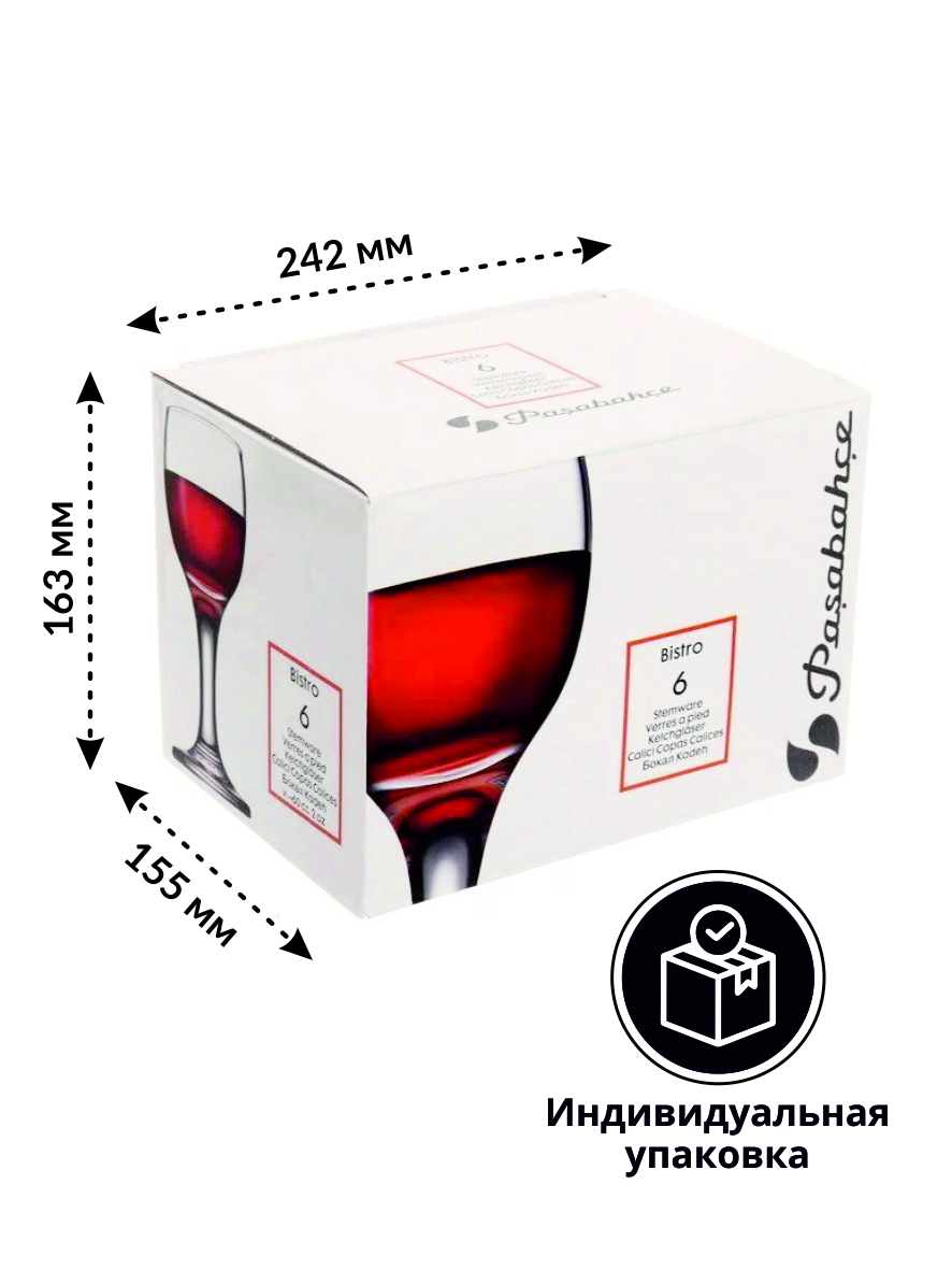 Набор Pasabahce "BISTRO" состоит из шести бокалов, выполненных из прочного натрий-кальций-силикатного стекла.