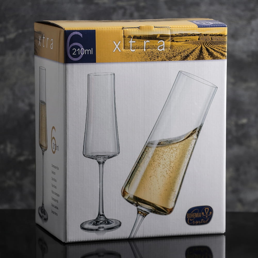 Благодаря оригинальной форме чаши бокалы Bohemia "Экстра" не затеряются в сервировке вашего стола. Подходит для подачи игристого вина. Рассчитан на 6 человек.