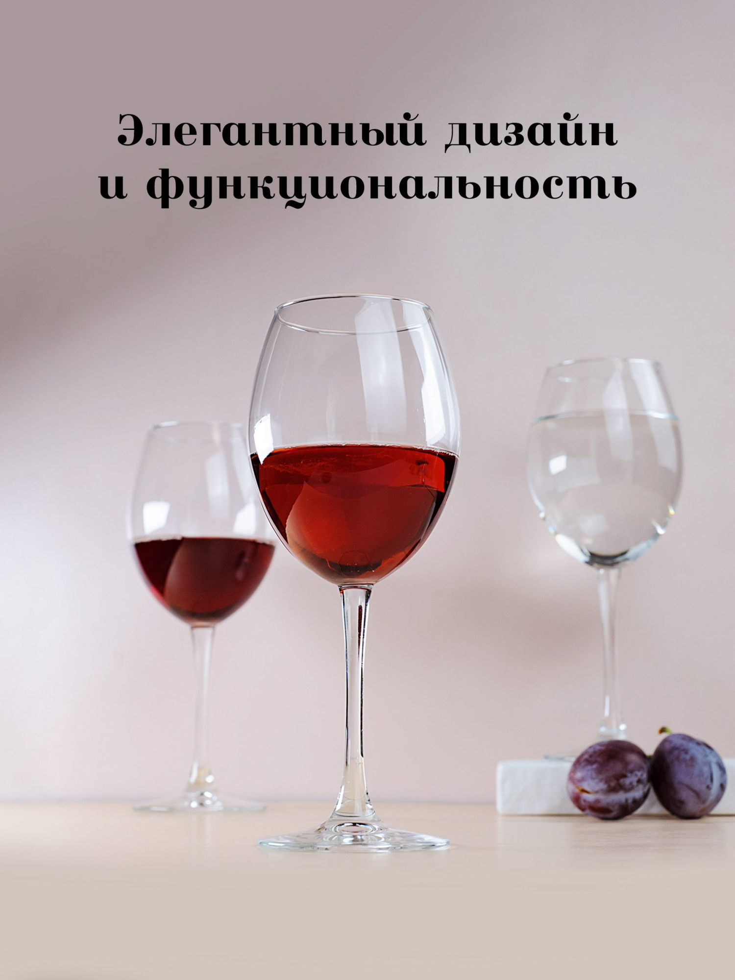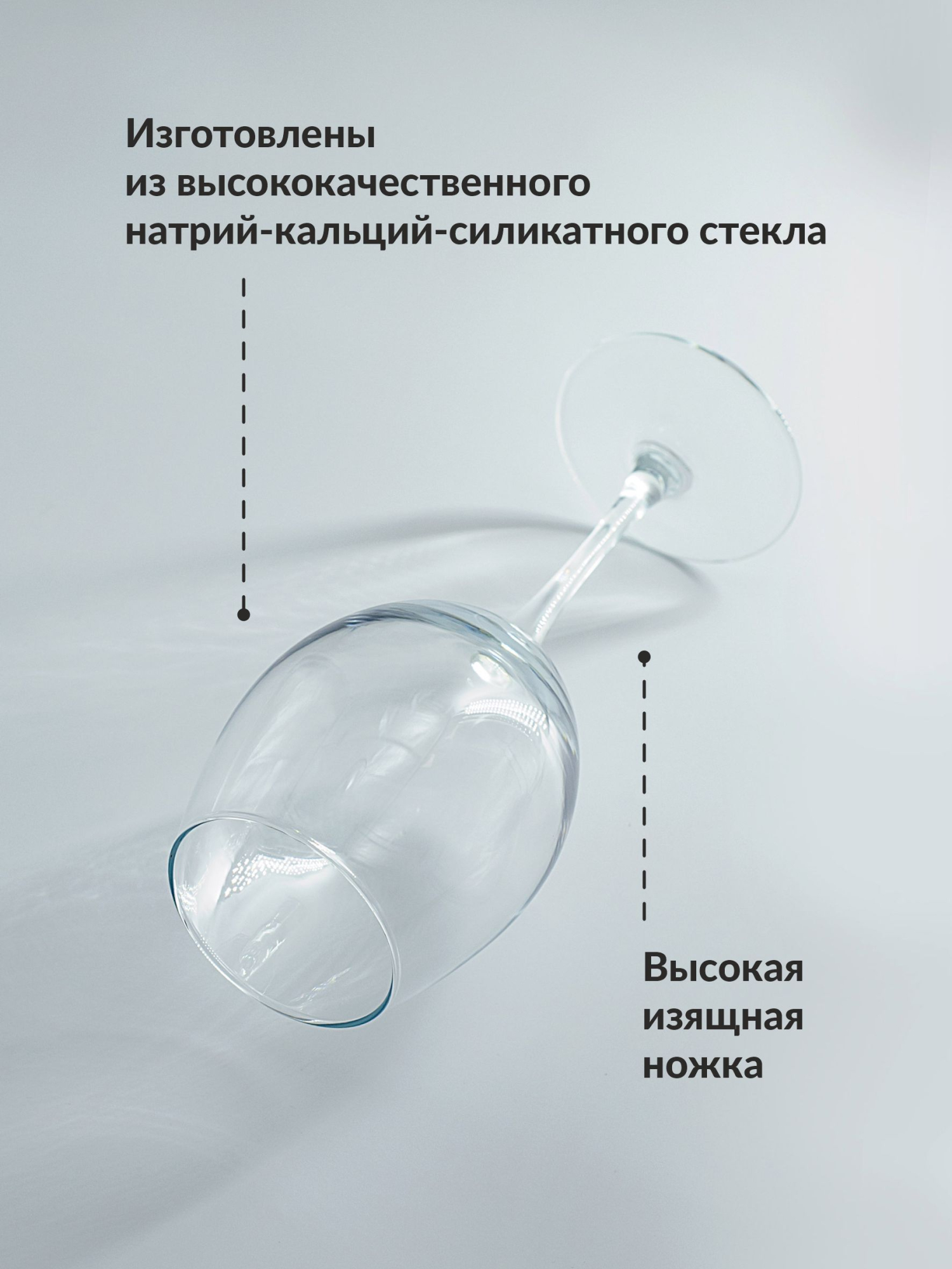 Изделия оснащены высокими ножками, предназначены для подачи красного и белого вина.
