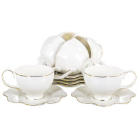 Чайный набор Грация белый с золотой каемкой. Продается в прямоугольной подарочной упаковке с окном и бантом. Рассчитан на 6 персон.