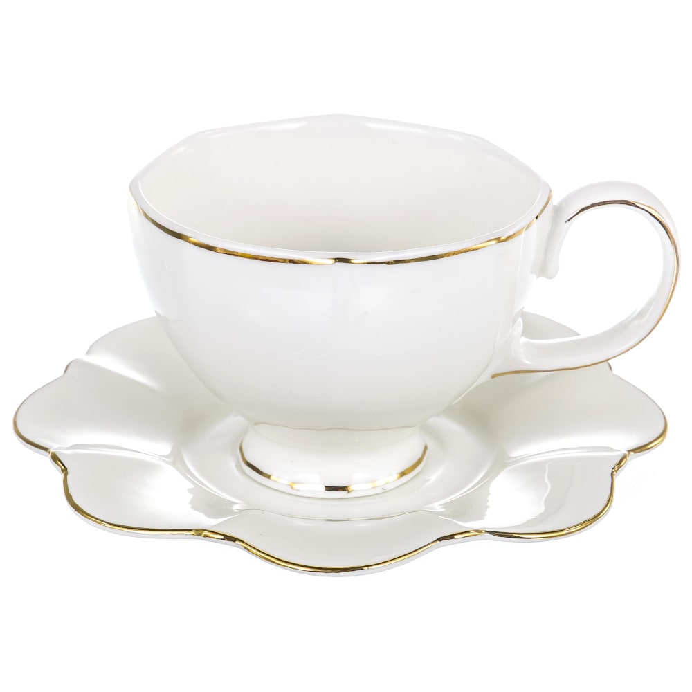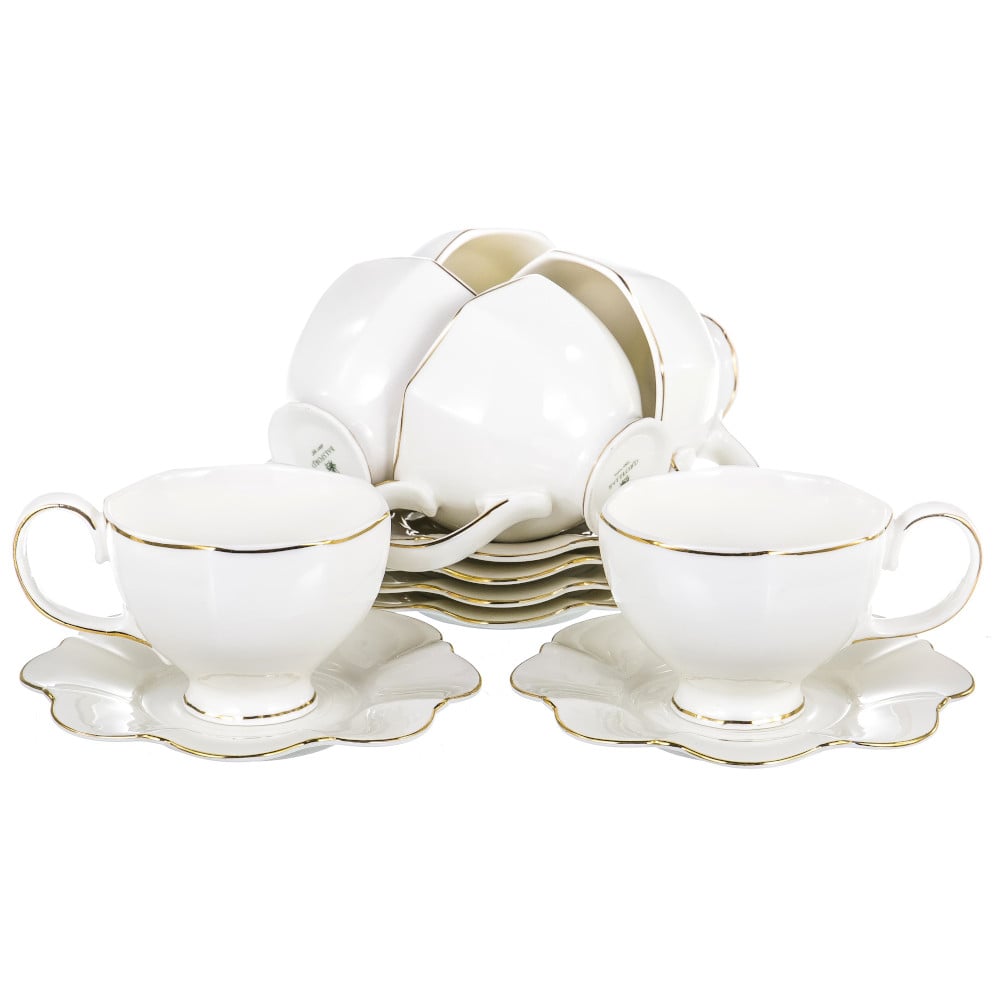Чайный набор Грация белый с золотой каемкой. Продается в прямоугольной подарочной упаковке с окном и бантом. Рассчитан на 6 персон.