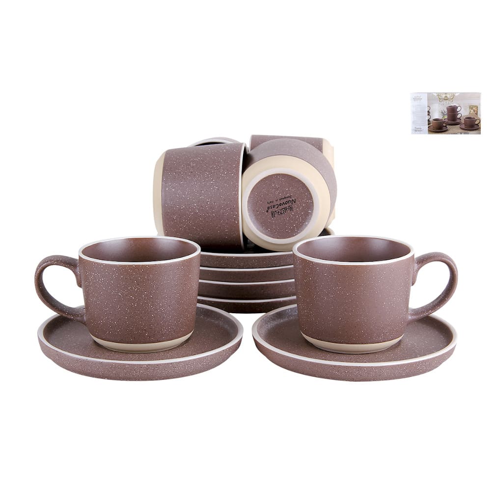 Чайный сервиз Terra подходит как для повседневного использования, так и для праздничной сервировки стола. В набор входит 6 чашек объемом 250 мл и 6 блюдец. Изделия изготовлены из высококачественной керамики, покрытие комбинированное (часть матовая и часть глазурованное).