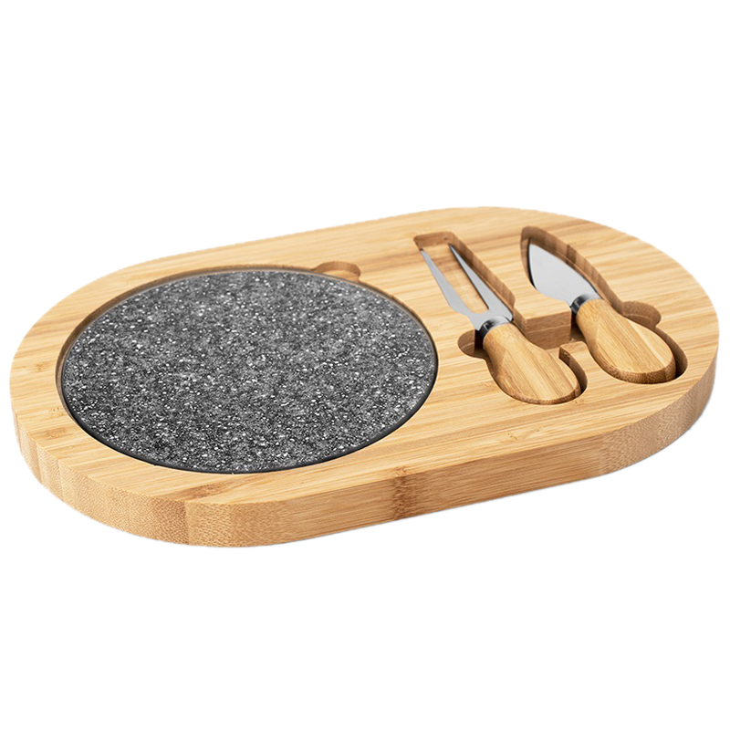 Сервировочный набор Esthetique состоит из разделочной доски из стекла, ножа для сыра, вилки для сыра и бамбуковой подставки. Подходит для нарезки и сервировки сыра, закусок. Станет отличным подарком, дополнит кухонный интерьер.