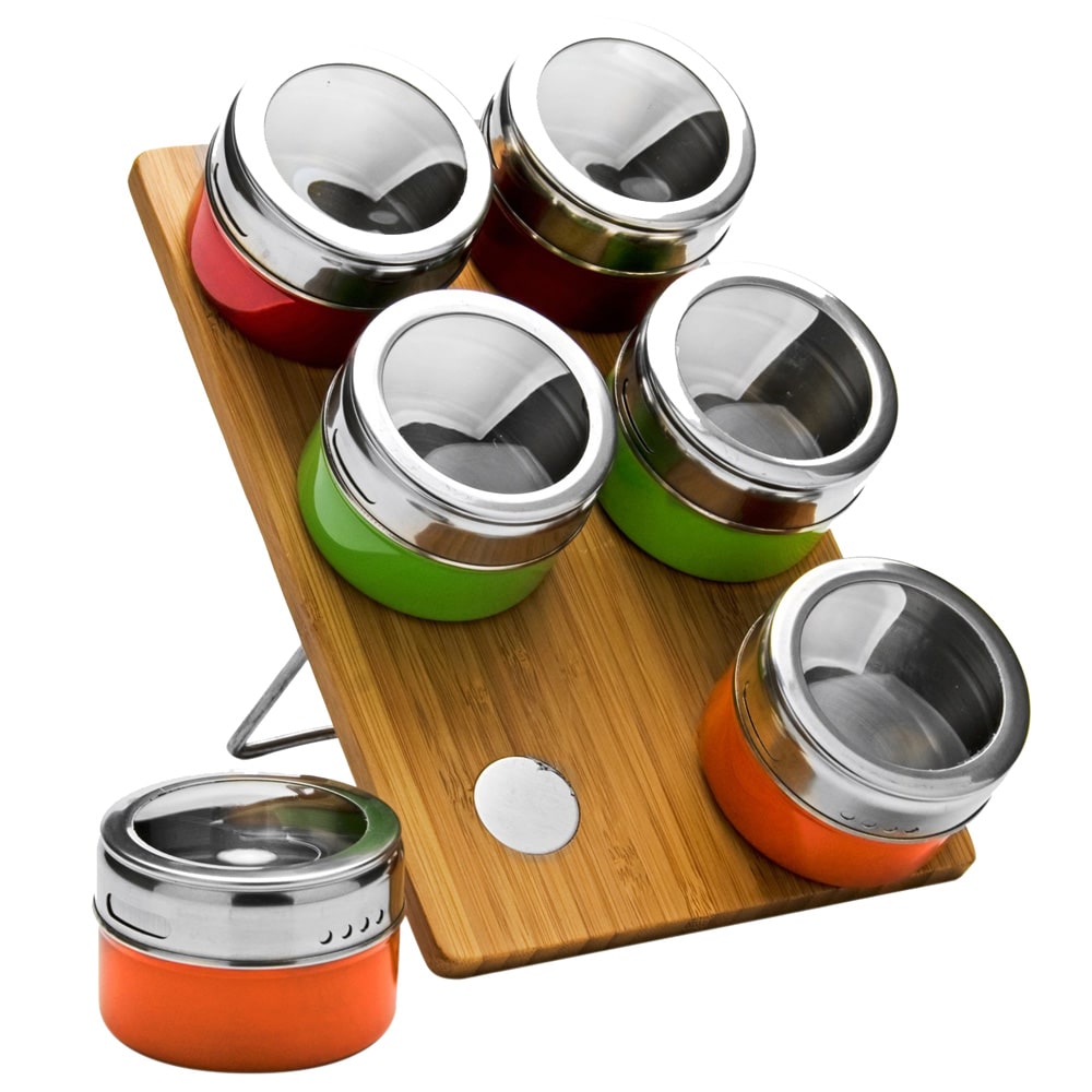 Набор для специй Mayer&boch включает в себя баночки для специй, расположенные на бамбуковой магнитной пластине, благодаря чему емкости не потеряются и всегда будут у вас под рукой. Предметы набора выполнены из высококачественной нержавеющей стали. Баночки для специй в наборе имеют одинаковый размер. Плотно закрывающиеся крышки имеют стеклянную вставку, что позволяет без труда найти нужные вам специи.