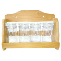 Набор для специй включает 4 баночки для специй и подставку для их хранения.
