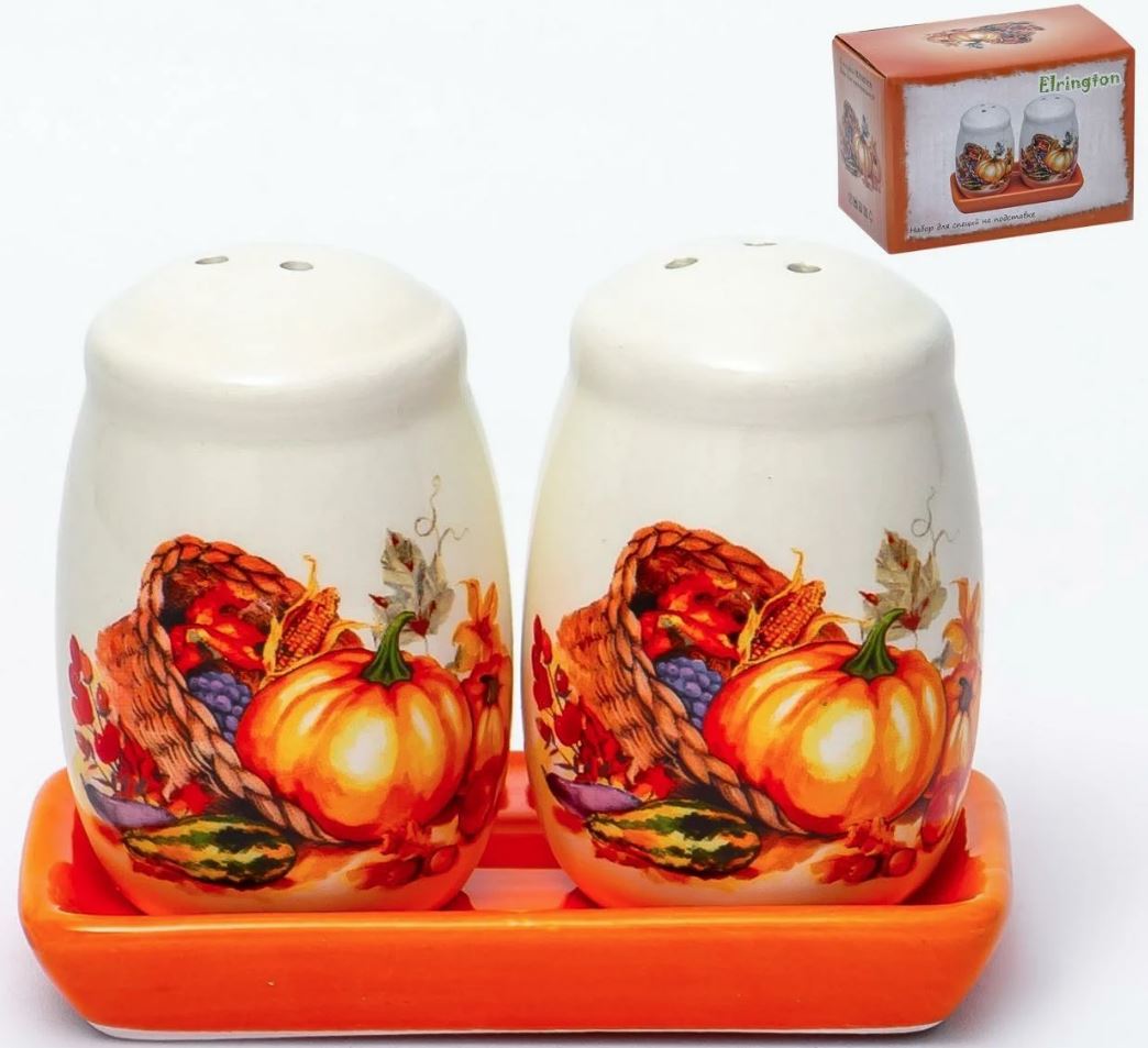 Набор для специй Тыква состоит из солонки и перечницы на подставке.