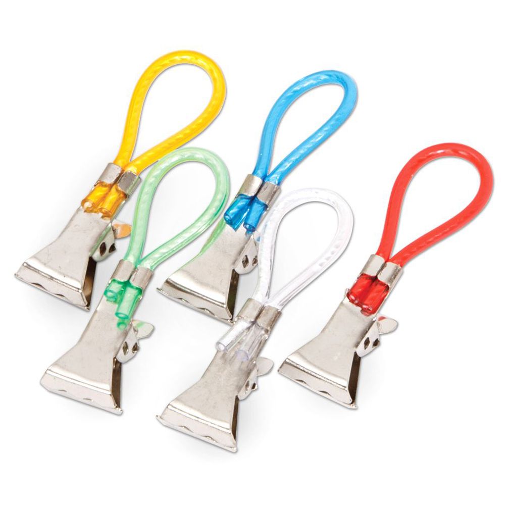Практичные прищепки-держатели для полотенец выполнены из нержавеющей стали. Набор включает в себя 5 прищепок-клипс с разноцветными петлями. Прищепки прекрасно подойдут для подвешивания полотенец без петли. Просто прикрепите прищепку к полотенцу, и вы можете повесить его в любом месте. Стальной зажим надежно держит полотенце, не позволяя ему выскользнуть.