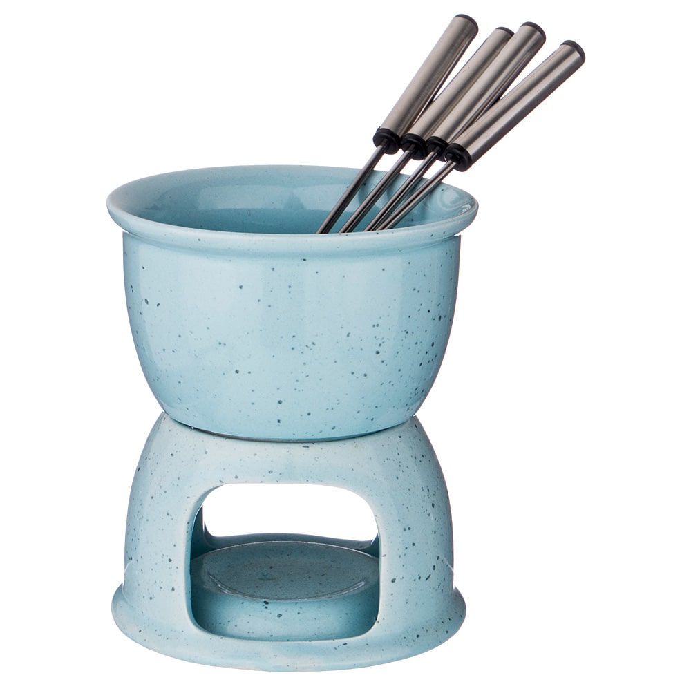 В набор входит небольшая чаша объемом 270 мл, подставка для свечи, вилочки для фондю - 4 шт.