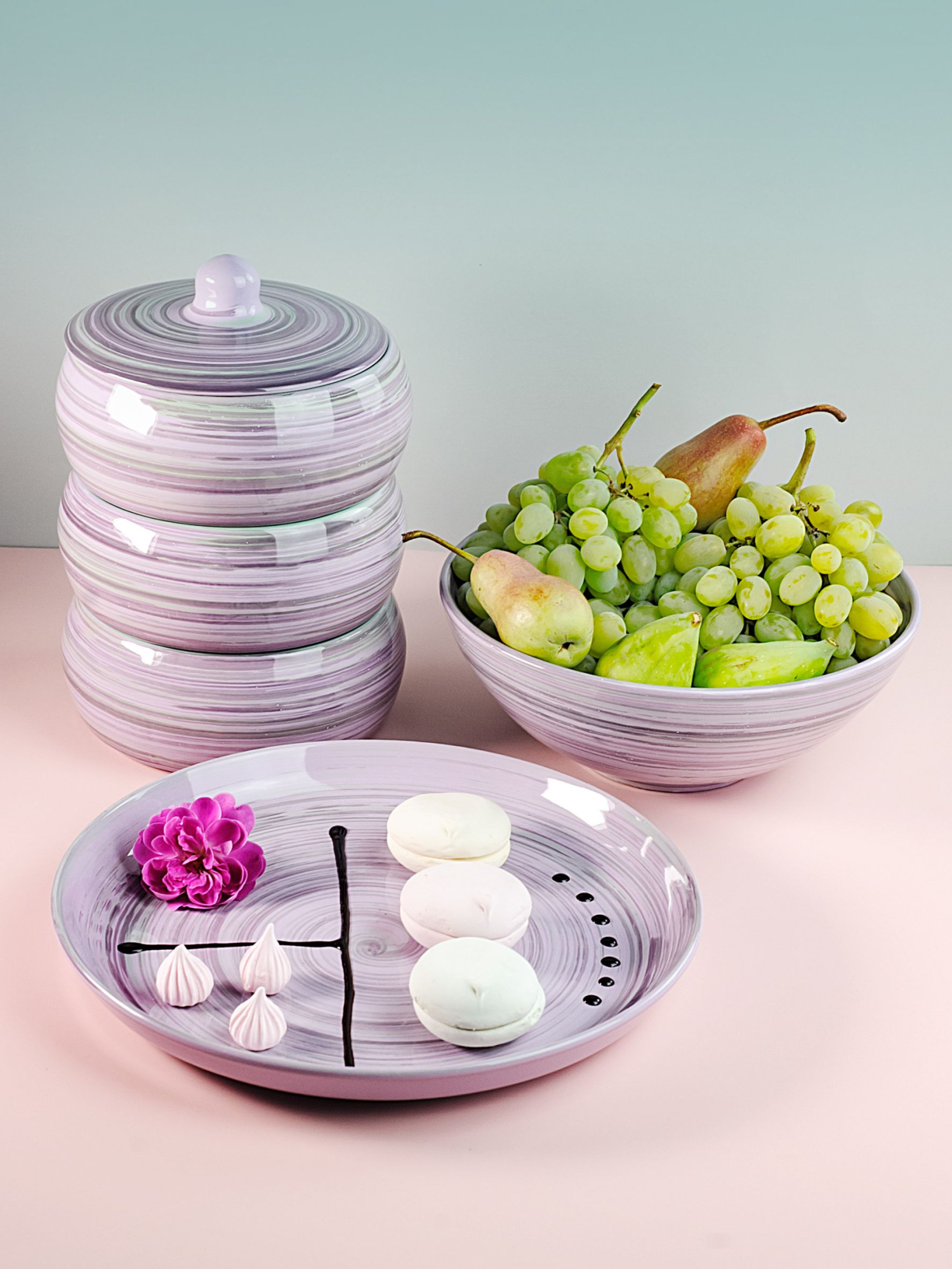 Набор Русский из коллекции Лаванда подойдет для хранения холодца, салатов или закусок. Изделие предотвращает заветривание, сохраняет привлекательный внешний вид блюда. Изделие подходит для готовки в микроволновой печи, духовом шкафу, русской печи, так как сделана из специальной жаропрочной красной глины (Нельзя использовать на открытом огне!).