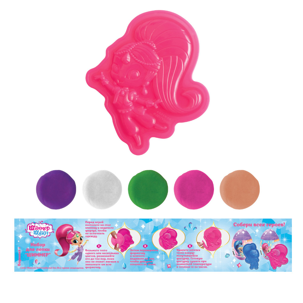 Создайте из теста разных цветов детализированные 2D-фигурки Шиммер и множество других замечательных поделок. Смешивайте цвета, получая новые оттенки, экспериментируйте! Цветная инструкция в картинках вам в этом поможет. А затем оставьте фигурки на воздухе, и через несколько часов, застыв, они превратятся в настоящие игрушки!