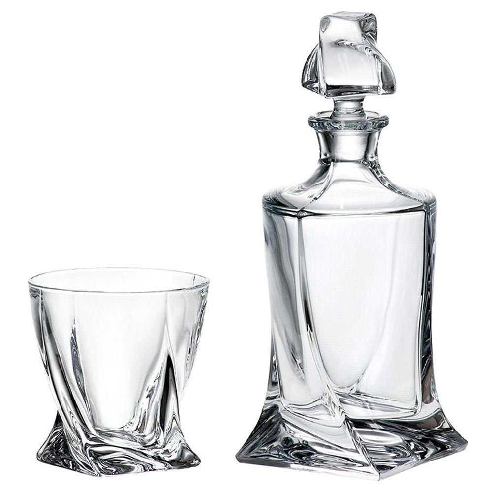 Набор для виски Crystal Bohemia "Квадро прозрачный" состоит из штофа и шести стаканов.
