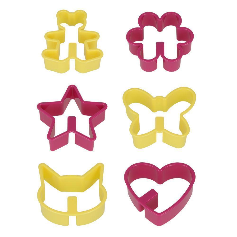 Набор для выпечки состоит из шести разных форм: медведь, бабочка, кошка, цветок, сердце, звезда.