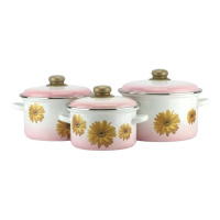 Набор универсальных эмалированных кастрюль "Герберы"(2 л + 3 л + 4 л) 2-3004/6 цилиндрической формы от торговой марки Эмаль.