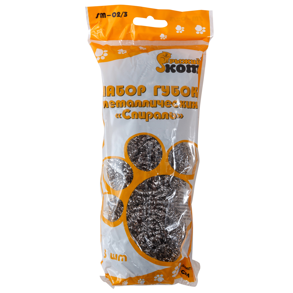 Металлическая губка Рыжий кот эффективно очистит сильно загрязненные поверхности и удалит жир. Подходит для чистки раковин и плит, сковородок и кастрюль, грилей, решеток и других инструментов для жарки.