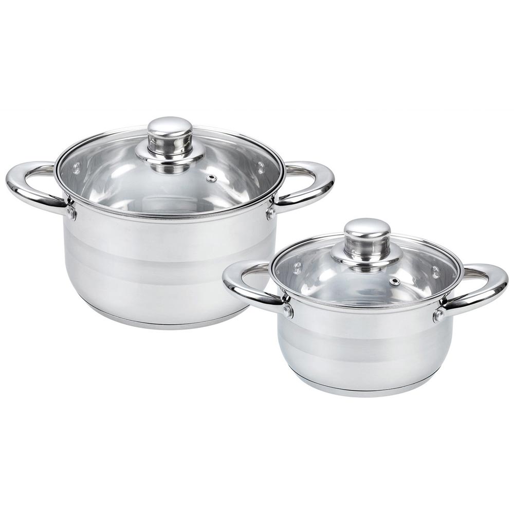 Набор кастрюль Enigma изготовлен из нержавеющей стали (2 кастрюли с крышками - 1,8 и 3,8 л).