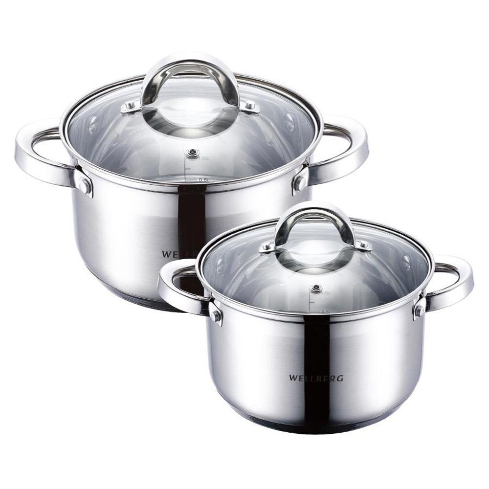 Набор Wellberg "Cello" состоит из двух кастрюль разного объема и двух крышек для них.