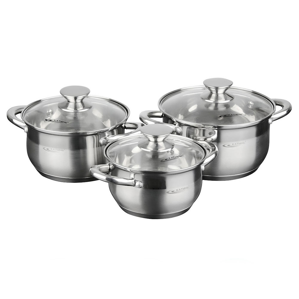 Набор посуды серии "ДИАНА" выполнен из высококачественной нержавеющей стали. Благодаря трехслойному термоаккумулирующему дну происходит равномерное распределение температуры по всей поверхности кастрюли, что обеспечивает быстрое приготовление.