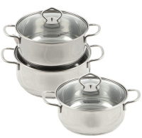 Состав набора: кастрюля с крышкой 2,2 л, кастрюля с крышкой 3,2 л, кастрюля с крышкой 4,2 л.