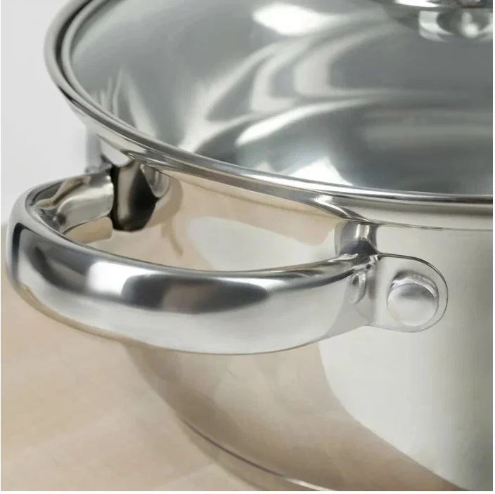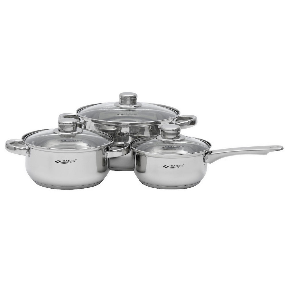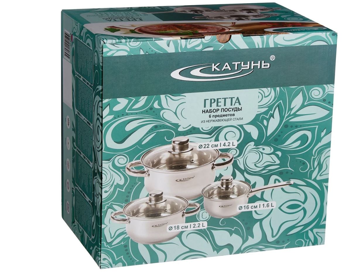 Набор посуды серии "Гретта" выполнен из высококачественной нержавеющей стали. Благодаря трехслойному термоаккумулирующему дну происходит равномерное распределение температуры по всей поверхности кастрюли, что обеспечивает быстрое приготовление.