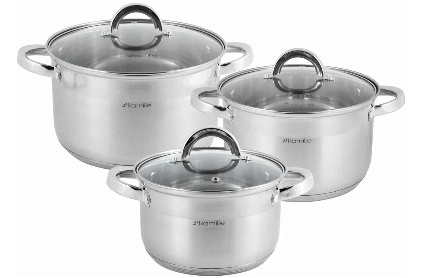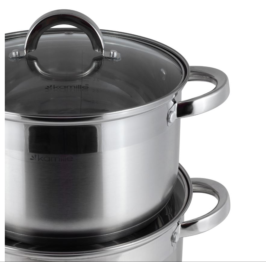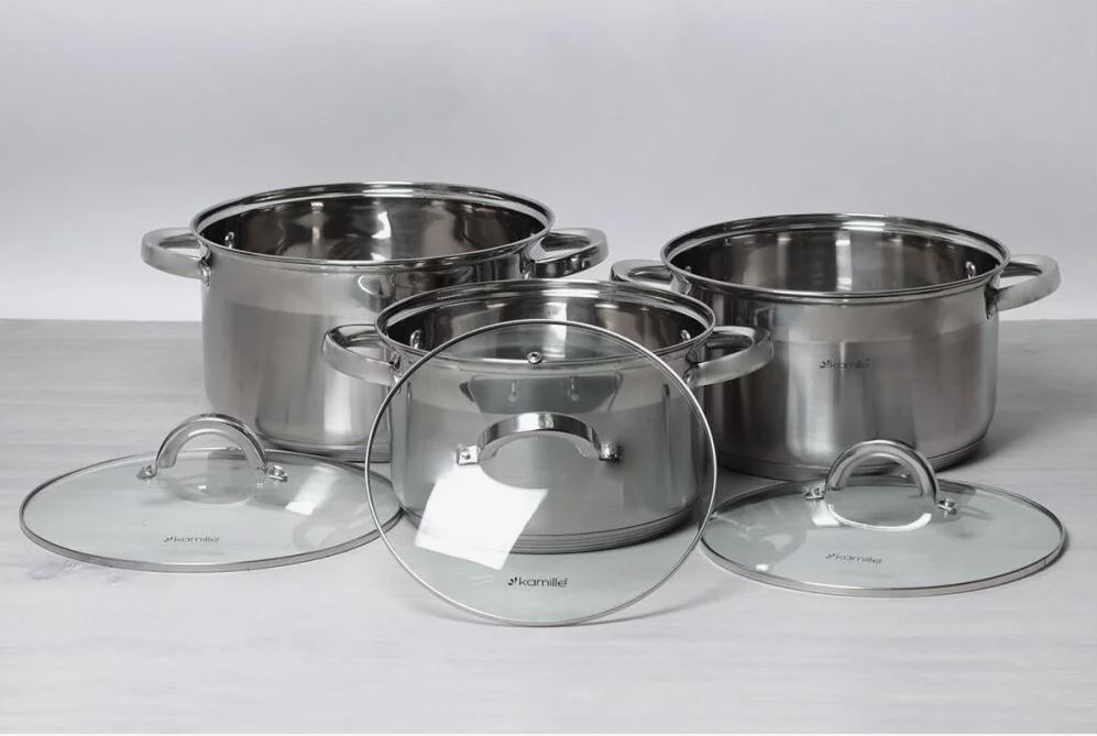 Набор кастрюль изготовлен из устойчивой к износу, прочной нержавеющей стали.