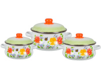 Набор эмалированных кастрюль производства "СтальЭмаль" с цветочным рисунком (арт.7KT131M). Крышки оснащены эргономичными пластиковыми ручками - удобно браться, не боясь обжечься.