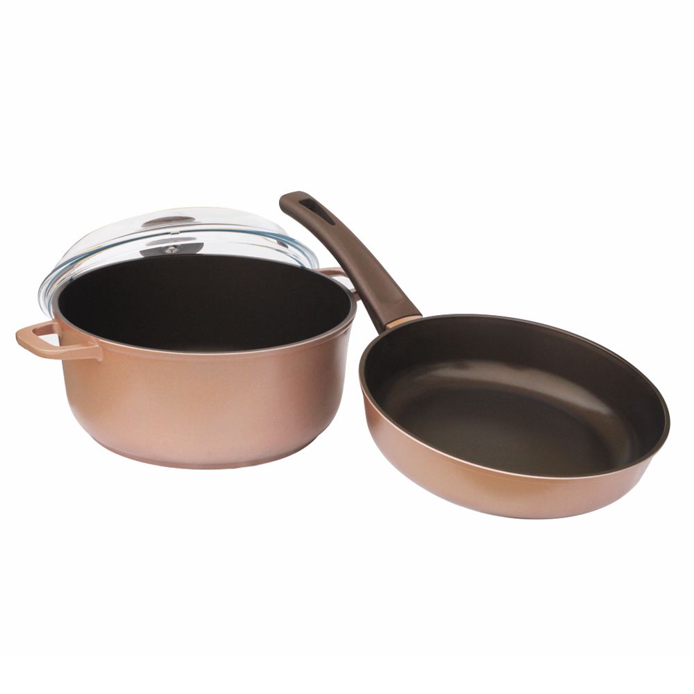 Набор алюминиевой посуды с антипригарным покрытием включает: