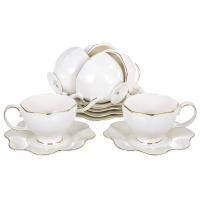 Набор кофейный Грация изготовлен из фарфора и декорирован белой перламутровой глазурью с золотом, продается в прямоугольной подарочной упаковке с окном и бантом. Идеален для подарка.