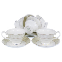Набор кофейный МАРКИЗА (12) 6 чашек 100мл + 6 блюдец, NEW BONE CHINA, цветочный декор с золотом, подарочная упаковка