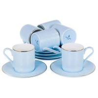 Набор кофейный МАРМАРИС (12) 6 чашек 100мл + 6 блюдец, NEW BONE CHINA, восточный с золотом, прямоугольная подарочная упаковка с окном и бантом