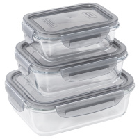 Емкости изготовлены из высококачественного боросиликатного жаропрочного стекла. Контейнеры можно использовать для приготовления, хранения, заморозки и сервировки пищи.