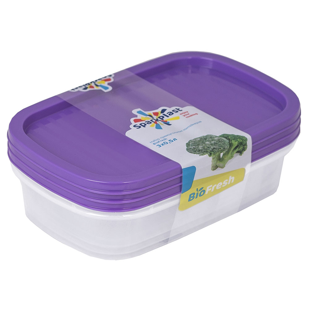 Набор пищевых контейнеров SparkPlast "BioFresh" объемом 0,5 л. Плотно закрывающаяся крышка, мерная шкала с 2-х сторон, волна на дне контейнера позволяет оставаться продуктом долше свежими.