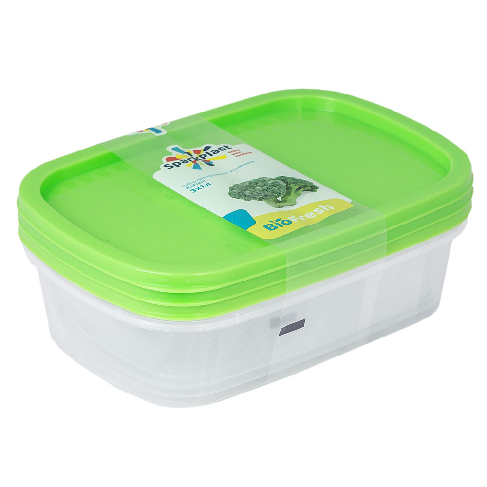 Набор контейнеров SparkPlast "BioFresh" объемом 1 литр. Плотно закрывающаяся крышка, мерная шкала с 2-х сторон, волна на дне контейнера позволяет оставаться продуктом долше свежими.