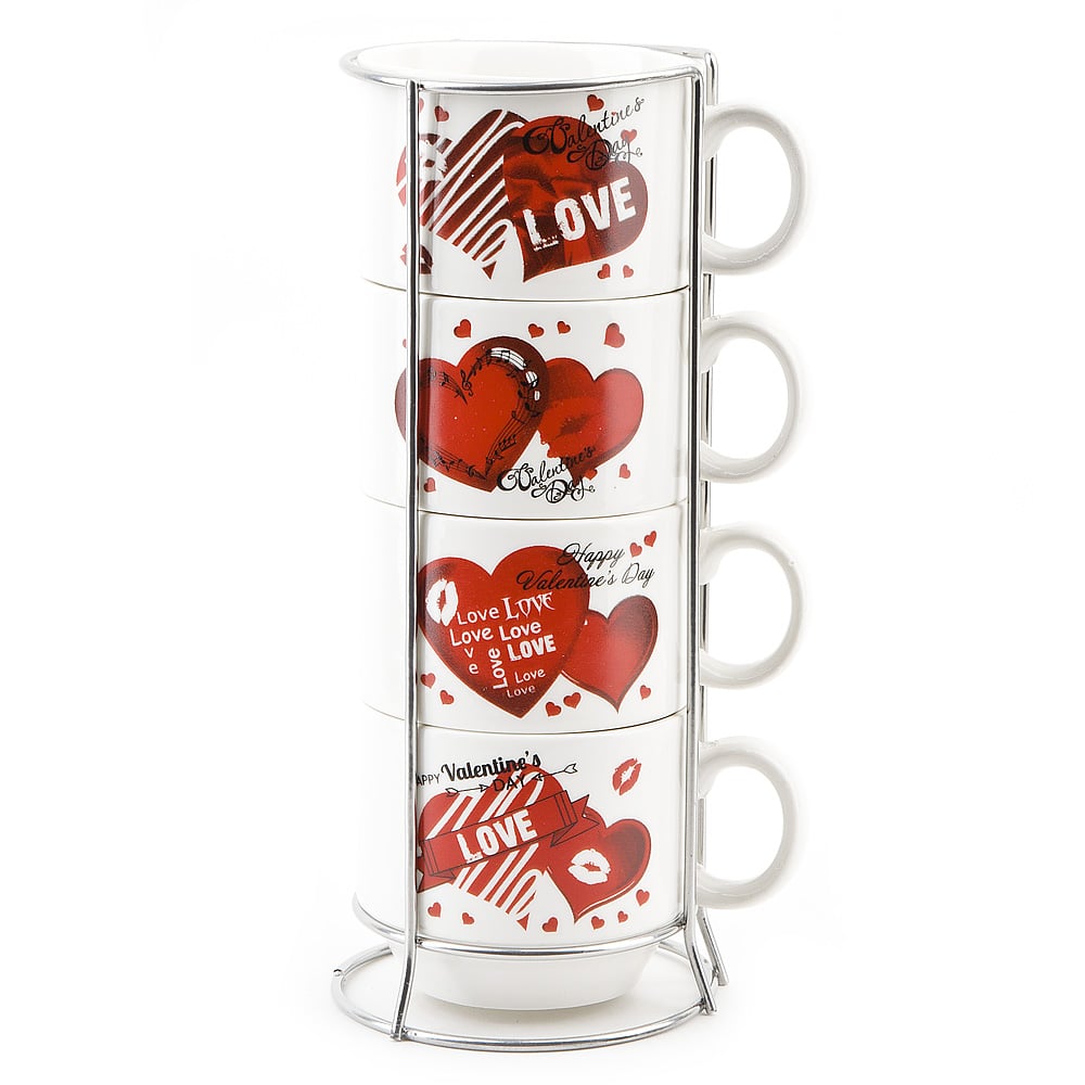 Набор фарфоровых кружек "Love" на металлической подставке. В комлекте четыре кружки объемом 160 мл, каждая декорирована разным рисунком.