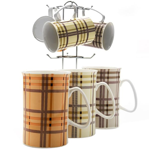 Набор из шести кружек изготовлен из высококачественной керамики и оформлены стильным рисунком "клетка".