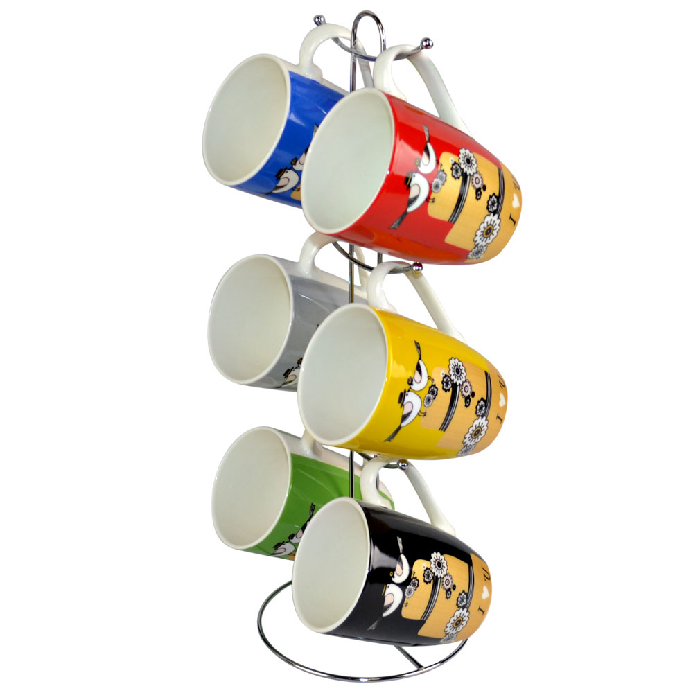 Набор из 6-ти чашек изготовлен из высококачественной керамики. Элегантный дизайн придется по вкусу и ценителям классики, и тем, кто предпочитает утонченность и изысканность. Он настроит на позитивный лад и подарит хорошее настроение с самого утра. Чайный набор идеально подойдет для сервировки стола и станет отличным подарком к любому празднику. Изделия можно компактно хранить на подставке, входящей в набор.