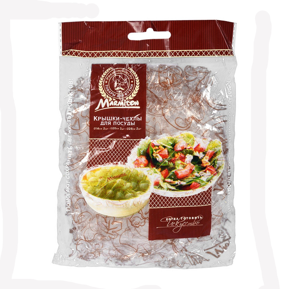 Набор крышек-чехлов для посуды Marmiton предназначены для сохранения свежести продуктов, напитков в открытых емкостях. При помощи резинки крышки прочно держатся на посуде и герметично закрывают емкость.