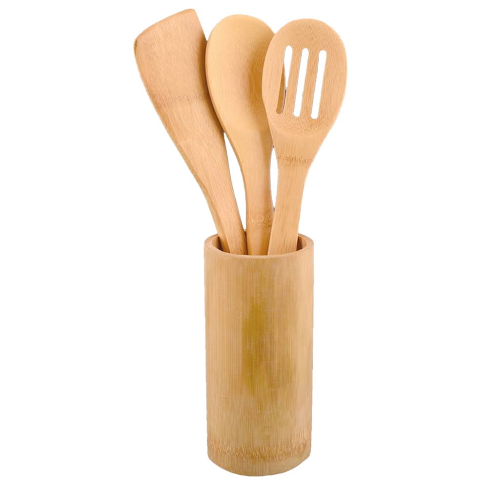Набор кухонных принадлежностей Катунь КТ-НП-02 состоит из 3 предметов и подставки: лопатка, ложка, ложка с прорезями. Бамбук идеально подходит для изготовления кухонных принадлежностей. Это экологически чистый материал, он ценится за устойчивость к нагрузкам и влагостойкость. Поверхность из бамбука мягкая, не впитывает влагу, легко моется, не деформируется. Во избежание сокращения срока службы и ухудшения внешнего вида не рекомендуется мыть изделия из бамбука в посудомоечной машине, оставлять надолго в воде, а также пересушивать. После мытья необходимо протереть и дать высохнуть.