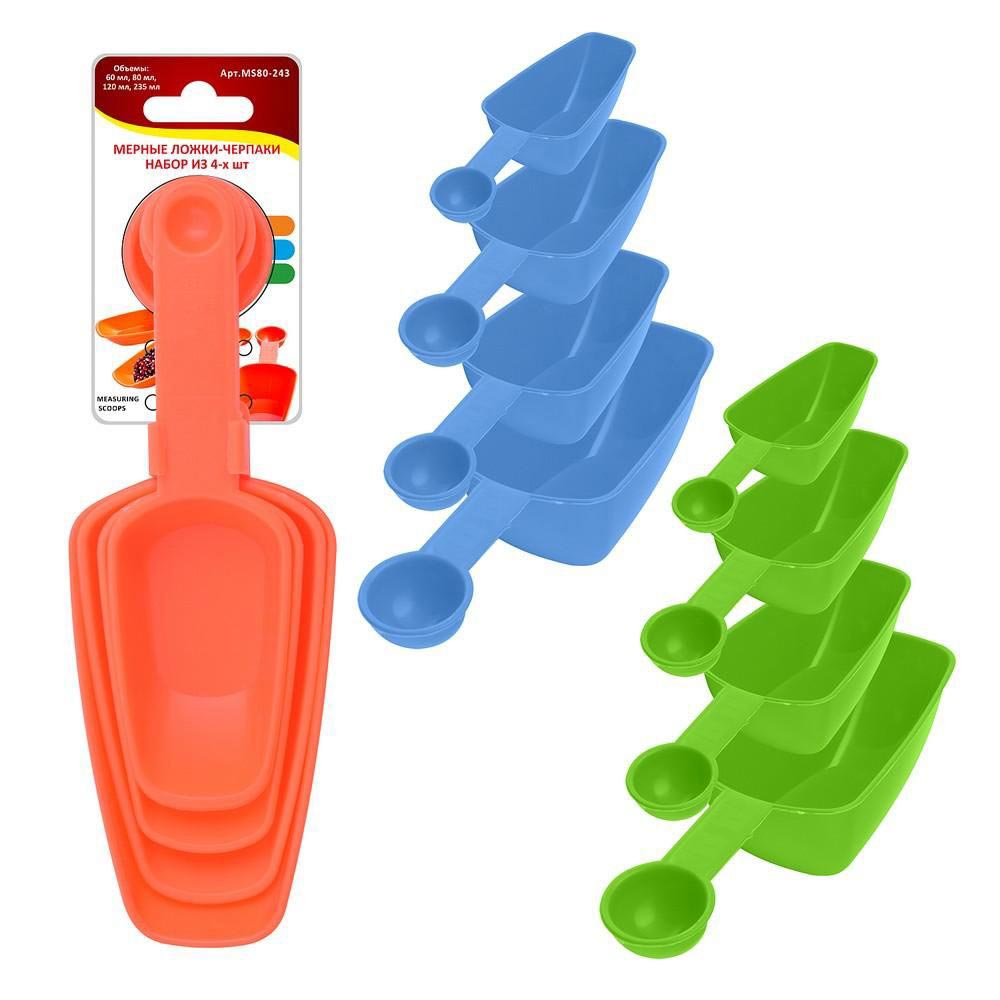 Набор мерных ложек-черпаков Мультидом MS80-243 — измерительные предметы для определения массы сыпучих, либо жидких продуктов: муки, соли, сахара, соды, молока, воды, меда, растительного масла, специй и прочих ингредиентов.
