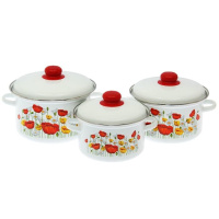 Набор универсальных эмалированных кастрюль "Луговой мак" (2 л, 3 л, 4 л) цилиндрической формы от торговой марки Эмаль.