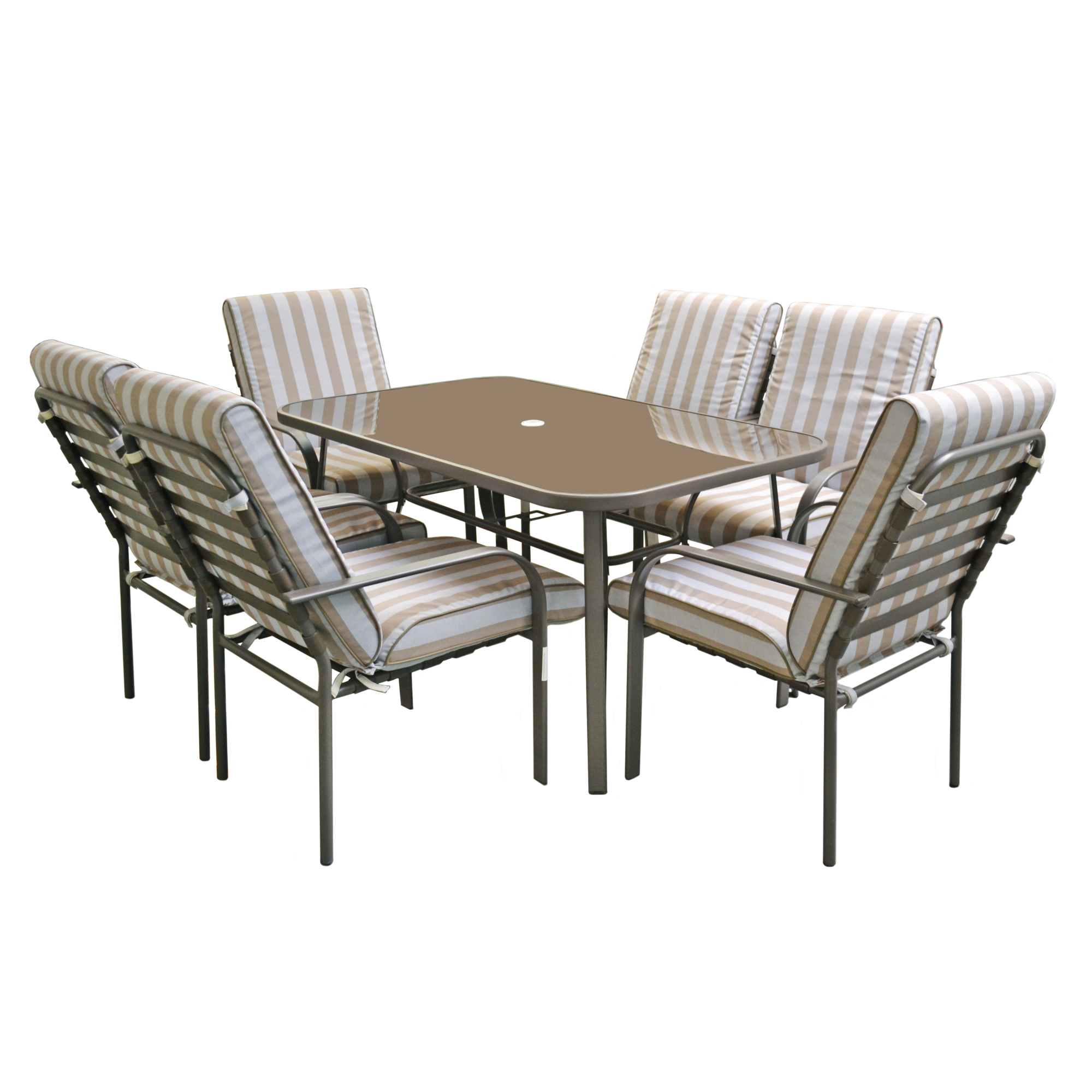 Набор мебели "Модерн" идеально подходит для организации уютных обедов на свежем воздухе. Этот стильный комплект подойдет как для дачи, так и для вашего загородного дома. Набор включает 6 стульев с матрасами и прямоугольный обеденный стол со стеклянной столешницей.