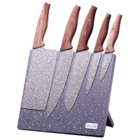Ножи компактно размещаются на стильной акриловой подставке, которая также занимает минимально места на столе.