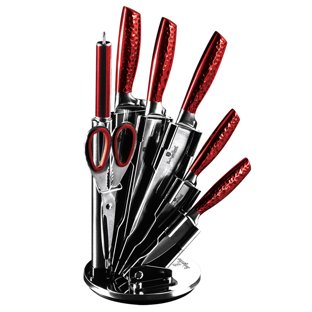 Набор ножей на подставке "Burgundy Metallic Line" от бренда Berlinger Haus состоит из 8 предметов.
