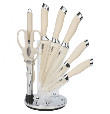 Набор ножей ZEIDAN Z-3128 из 9 предметов. Ножи изготовлены из нержавеющей стали. Прорезиненные ручки. Складная подставка. В набор входят: нож-топорик - 1,5 мм / 16,5 см; поварской нож - 1,5 мм / 20 см; нож разделочный - 1,5 мм / 20 см; универсальный нож - 1,2 мм / 12,5 см; нож для овощей – 1,2 мм / 9 см; мусат; ножницы; овощечистка.