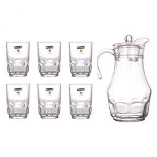 Простой, практичный и одновременно красивый питьевой набор из прозрачного ударопрочного стекла. Разливаем и пьем любимые напитки - фирменные или самодельные - с удовольствием. Незаменим во всех случаях: для ежедневного хранения чистой питьевой воды на кухне, на банкете, на пикнике, для шведского стола и загородного дома.7 предметов на 6 персон.