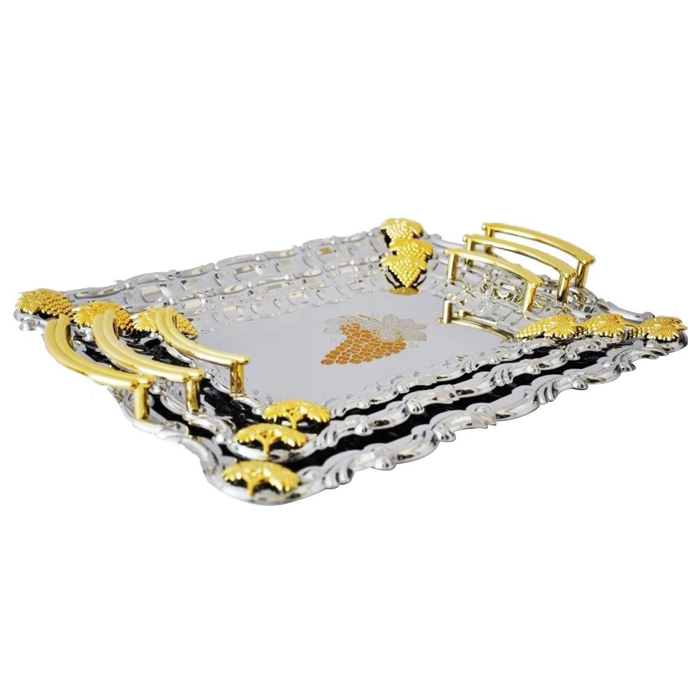 Набор "Mayer & Boch" состоит из трех сервировочных подносов разного размера, изготовленных из нержавеющей стали с зеркальной полировкой. Размер маленького подноса: 29 х 19 х 3 см; размер среднего подноса: 34,5 х 22,5 х 3,5 см; размер большого подноса: 43 х 28,5 х 3,5 см. Подносы имеют прямоугольную форму и ручки золотистого цвета. Изделия оформлены изображение цветов и изящными краями. Подносы отлично подойдут для подачи рыбных блюд, а традиционные блюда будут выглядеть на них более аппетитно. Современный стильный дизайн и функциональность позволят подносам занять достойное место на кухне.