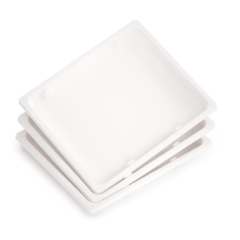 Углубленные прямоугольные подносы очень удобны для заморозки пельменей, мантов, котлет, так как решают вопрос рационального размещения большого количества заготовок. Высокие бортики подноса защищают продукты от случайного падения при выемке из морозильной камеры. На дне подноса для заморозки пельменей имеются рельефные полосы, предотвращающие прилипание продуктов к подносу, после заморозки их легко снять с поверхности.