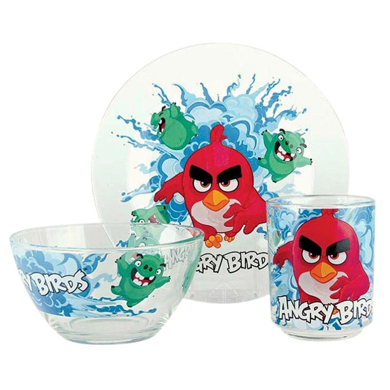 Набор детской посуды "Angry Birds" состоит из кружки, тарелки и салатника.