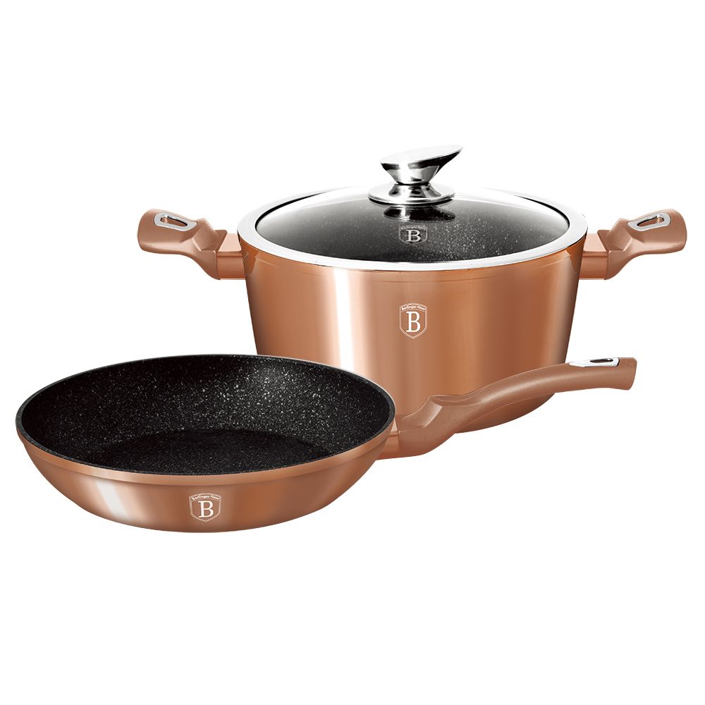 Кастрюля "Rosegold Line"изготовлена из кованого алюминия с трехслойным мраморным покрытием.